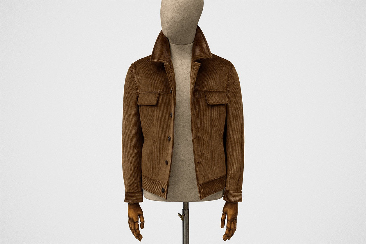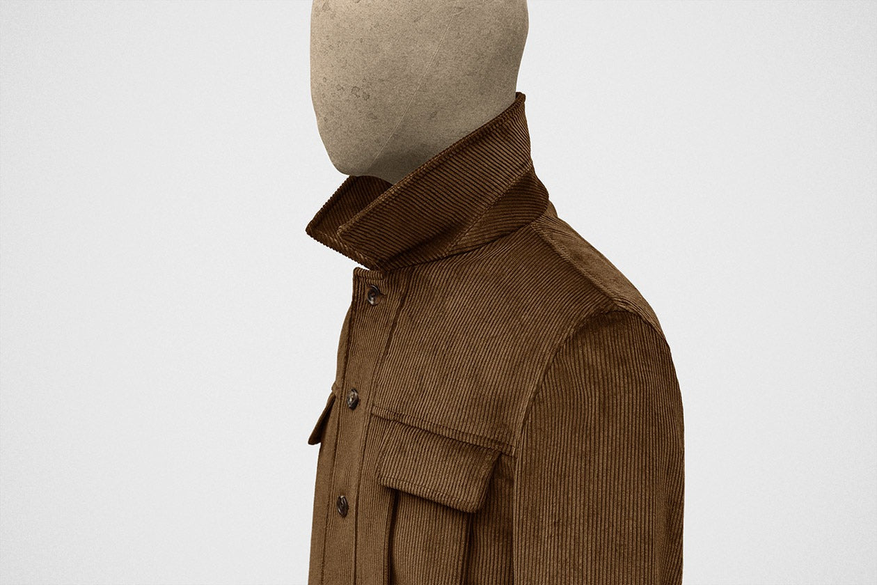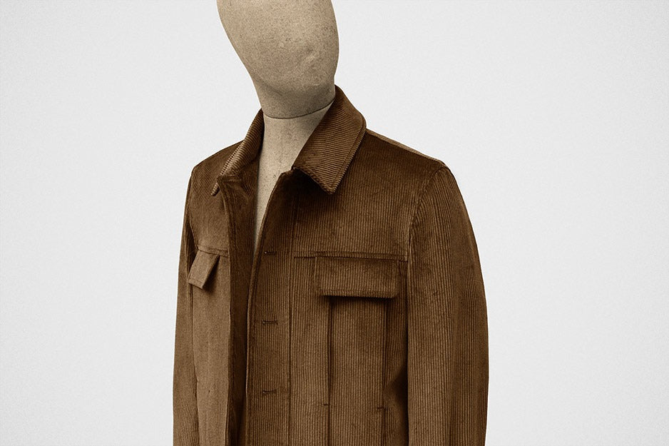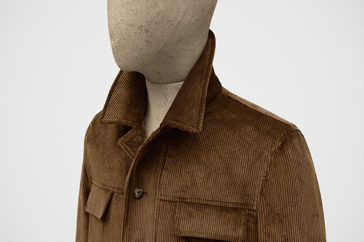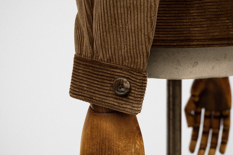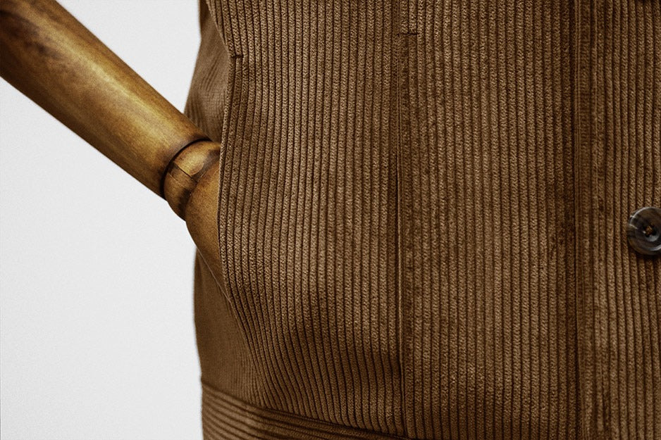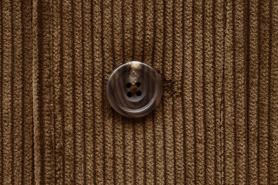 Six-button jacket, made in London, with heavyweight (14oz) corduroy from a mill in Lancashire, horn buttons from the Cotswolds, and brass loops from the West Midlands.