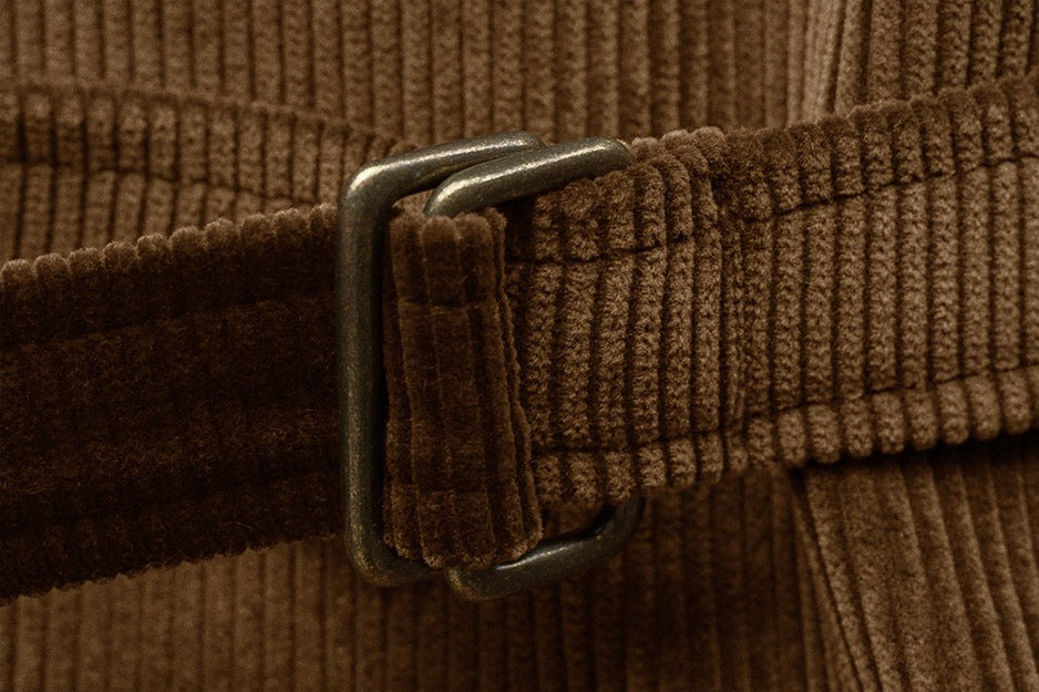 This is corduroy of some substance: heavy, thick, and wide of wale. Still, corduroy being corduroy, despite its stern exterior, deep down this is a very soft cotton — wonderfully smooth and warm against the skin, surprisingly breathable, and with a character enriched with time and wear.