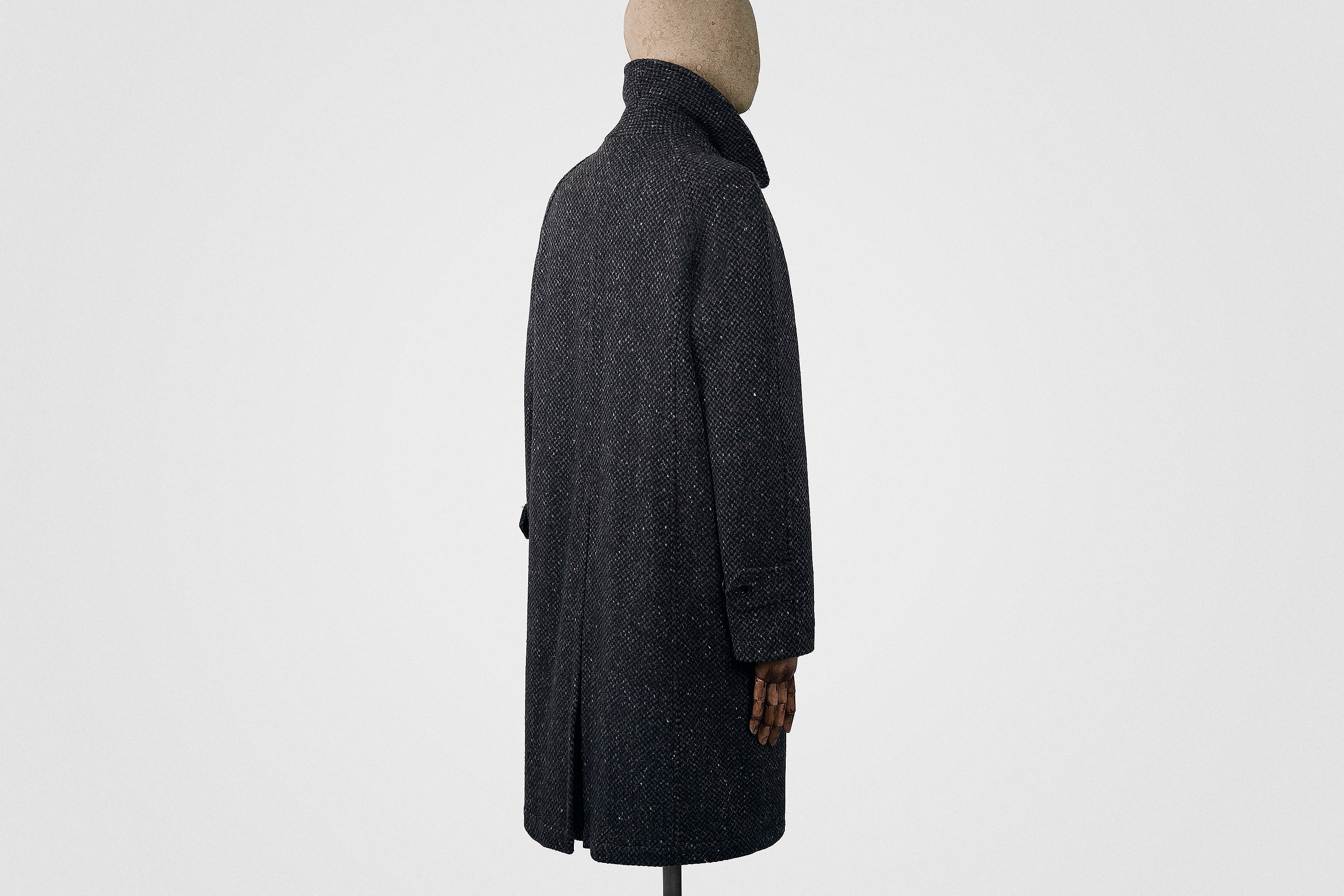The balmacaan arrived yesterday, intact, beautifully wrapped and boxed. It is beautiful and fits perfectly. Over a suit with cell phone, stethoscope, and assorted EDC gear on board, it is comfortable and not baggy. And the fabric is amazing. A soft hand and drape but seems as if it will wear forever. Love the Donegal slubs, too. I often wear a popped collar — a throwback to my preppy days — and the collar here really pops. I couldn't be more pleased. Thank you again for you great service and superior craftsmanship.