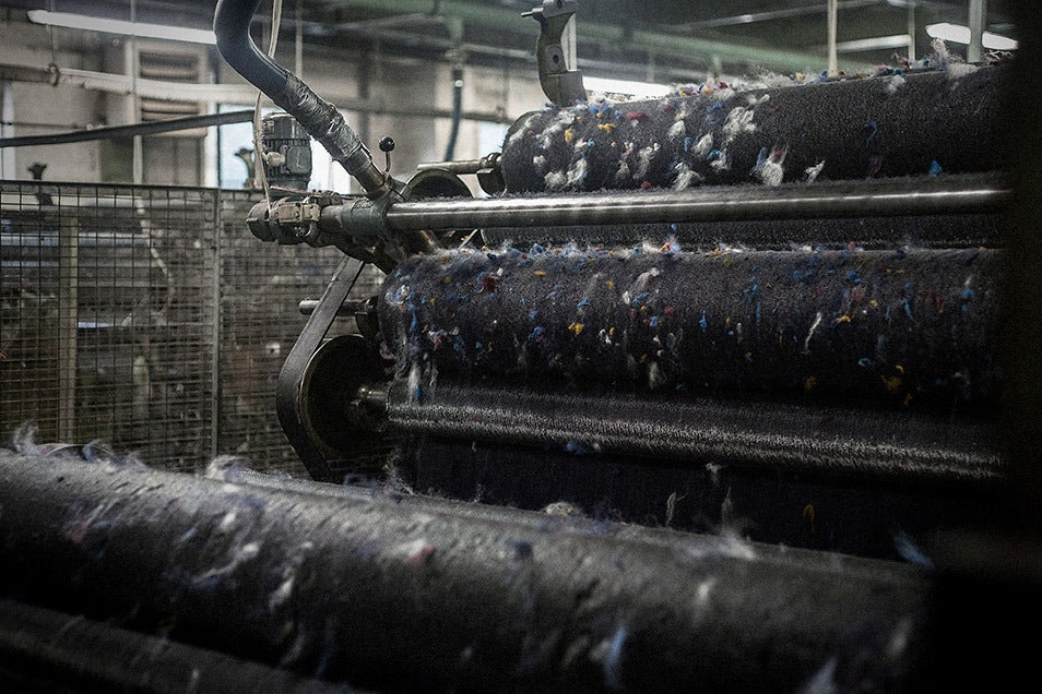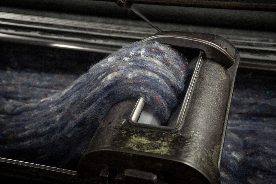 The material comes from yarn that is dyed and spun and carded and nepped and burred in Donegal.