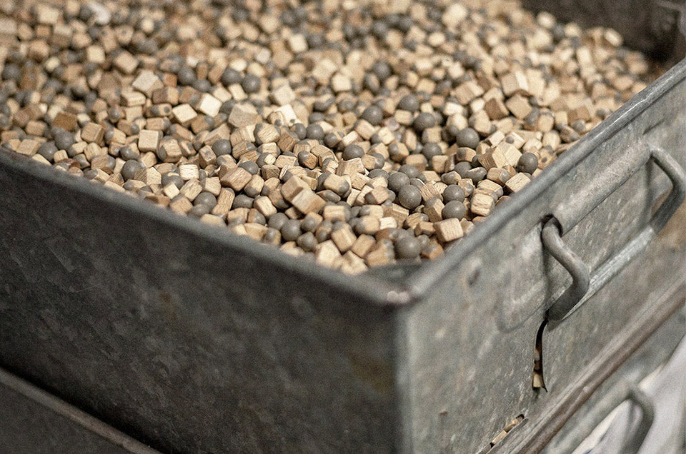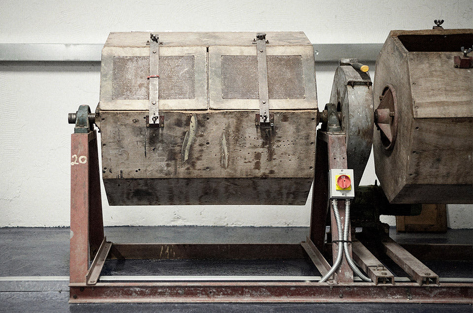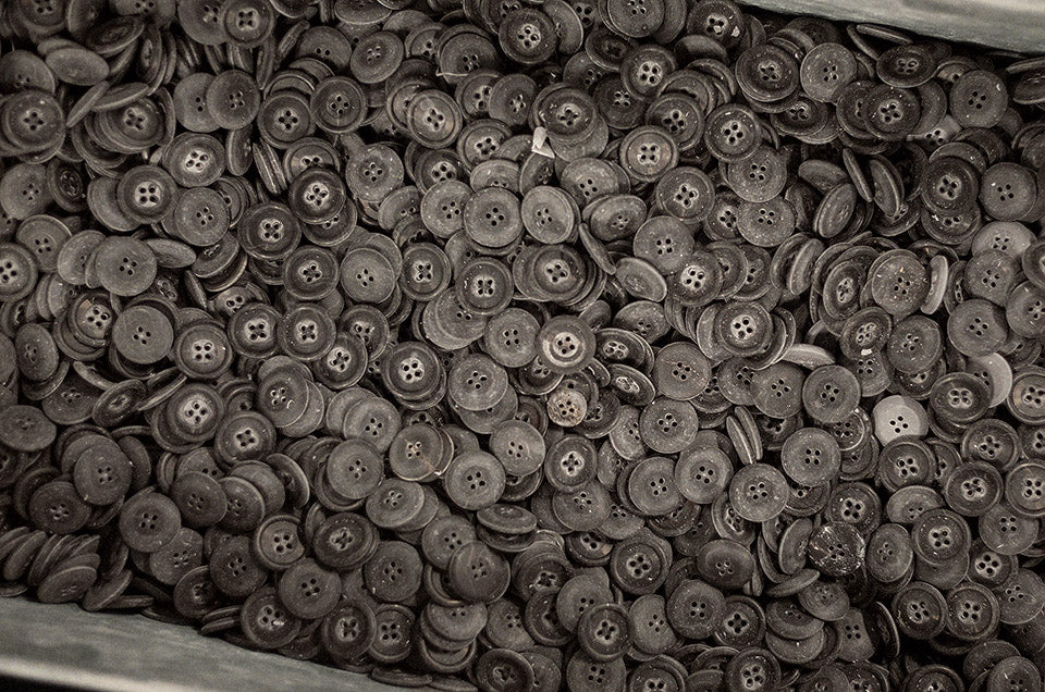 The horn buttons are cut, shaped, and polished by the last horn button-makers in Britain. Relocated from the Midlands to the Cotswolds, they continue a tradition going back to the 18th century."It is no easy task,"claimed William Hutton in 1780,"to enumerate the infinite diversity of buttons made in Birmingham."