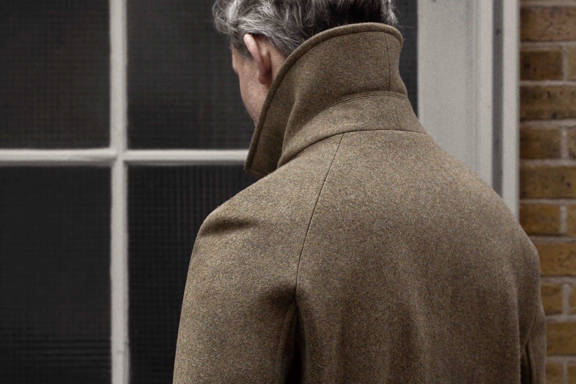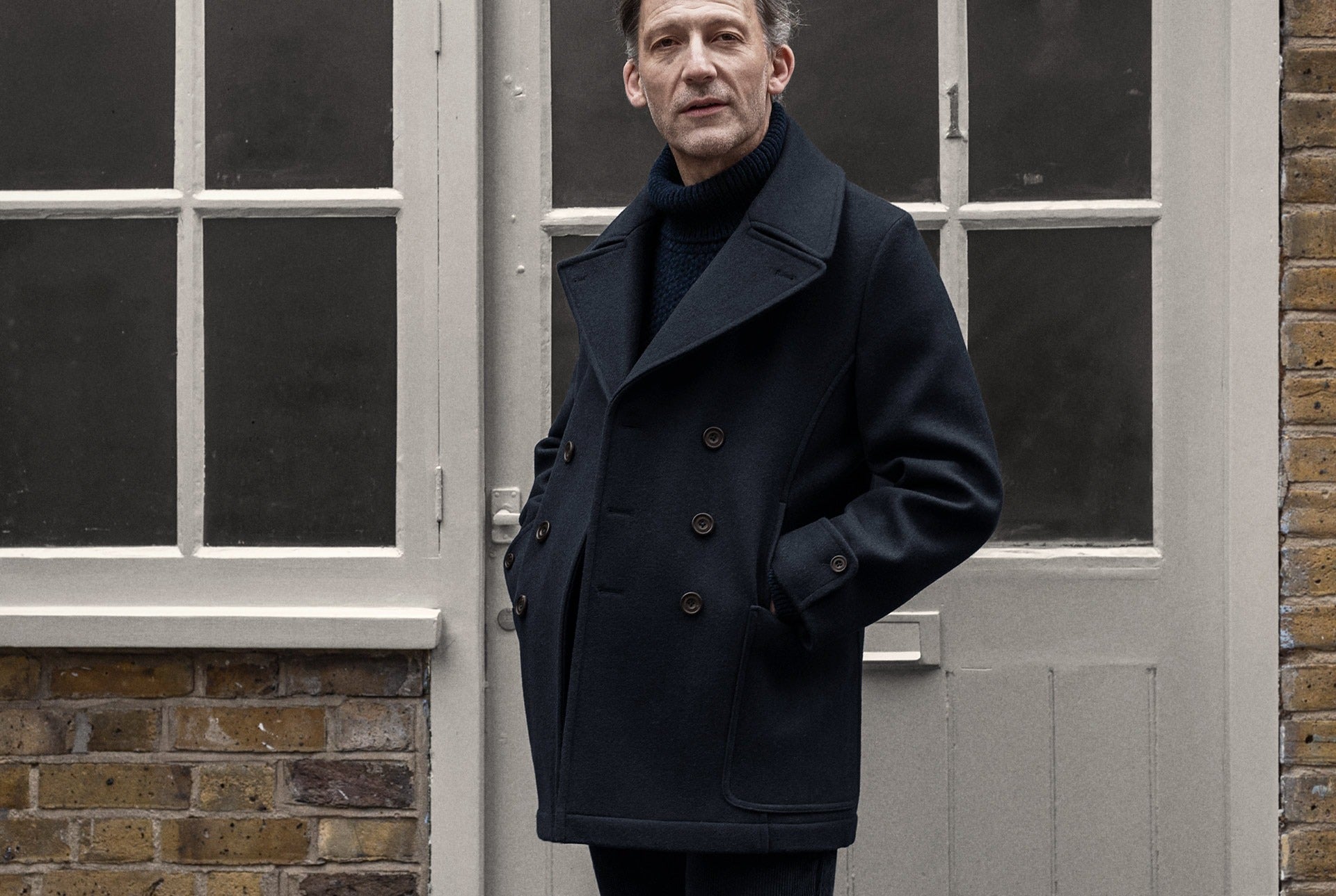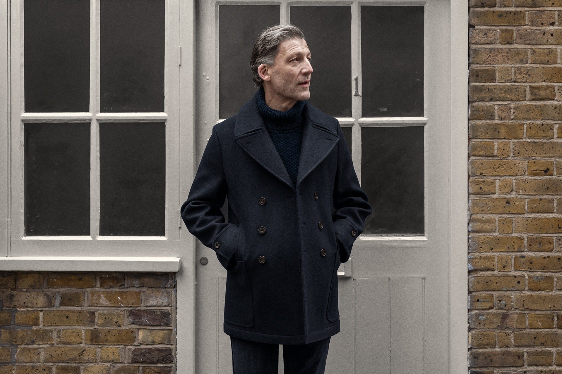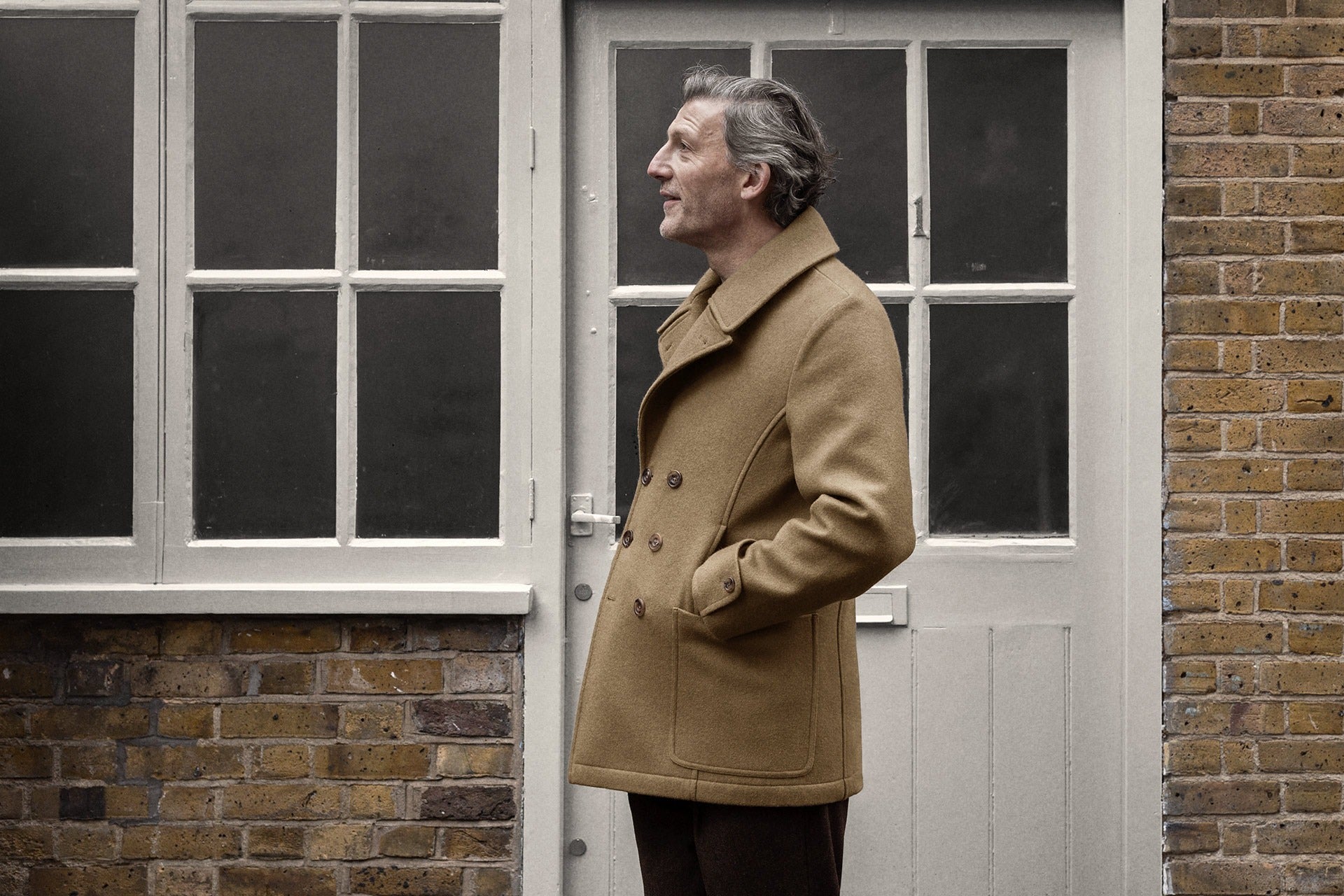 The peacoat has what's known, at least in the garment trade of east and north-east London, as an Ulster collar. It is cut such that it is just as happy to stand upright, skimming the neck at the sides and back, as it is sitting down — but even then, it is proud, and is never concave or flat or in any way apologetic.
