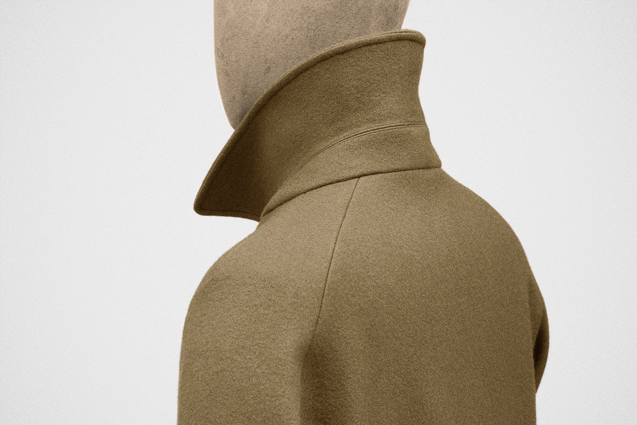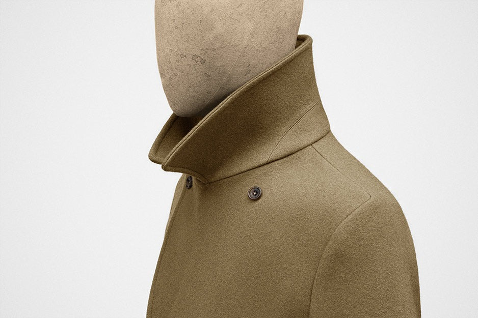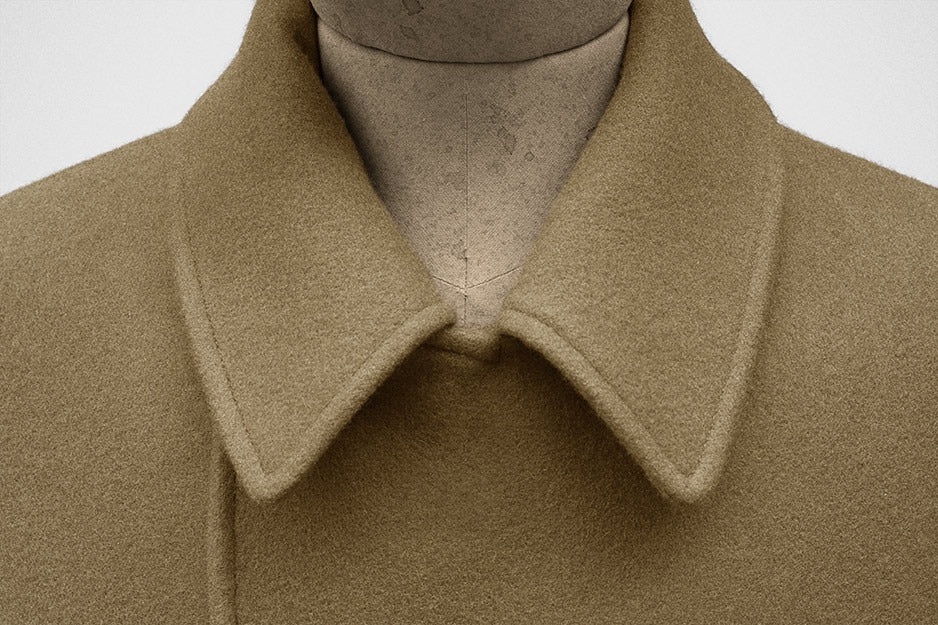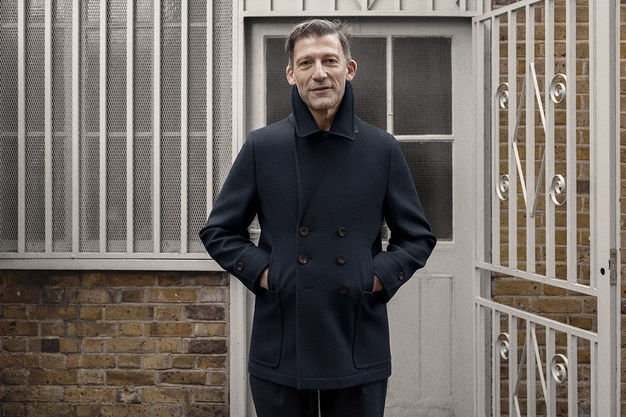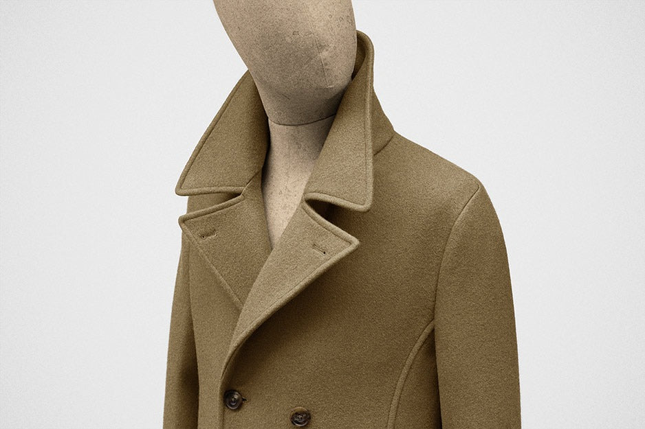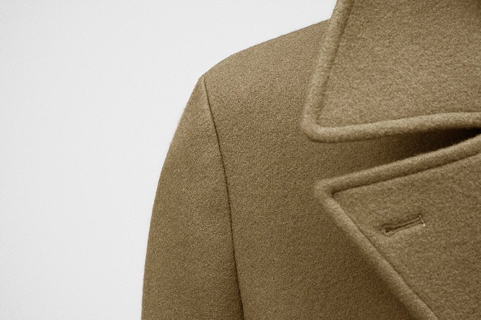 The peacoat has what's known, at least in the garment trade of east and north-east London, as an Ulster collar. It is cut such that it is just as happy to stand upright, skimming the neck at the sides and back, as it is sitting down — but even then, it is proud, and is never concave or flat or in any way apologetic.