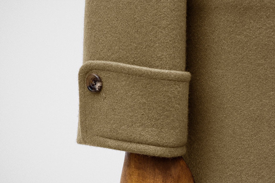 The coat has half-cuffs at the end of its sleeves. A nod to tradition, these, which are more typically seen on uniform coats and more formal styles of outerwear. These are more conservative than the great half-cuffs of yore, and serve no purpose other than to introduce a little pinch of grandeur.