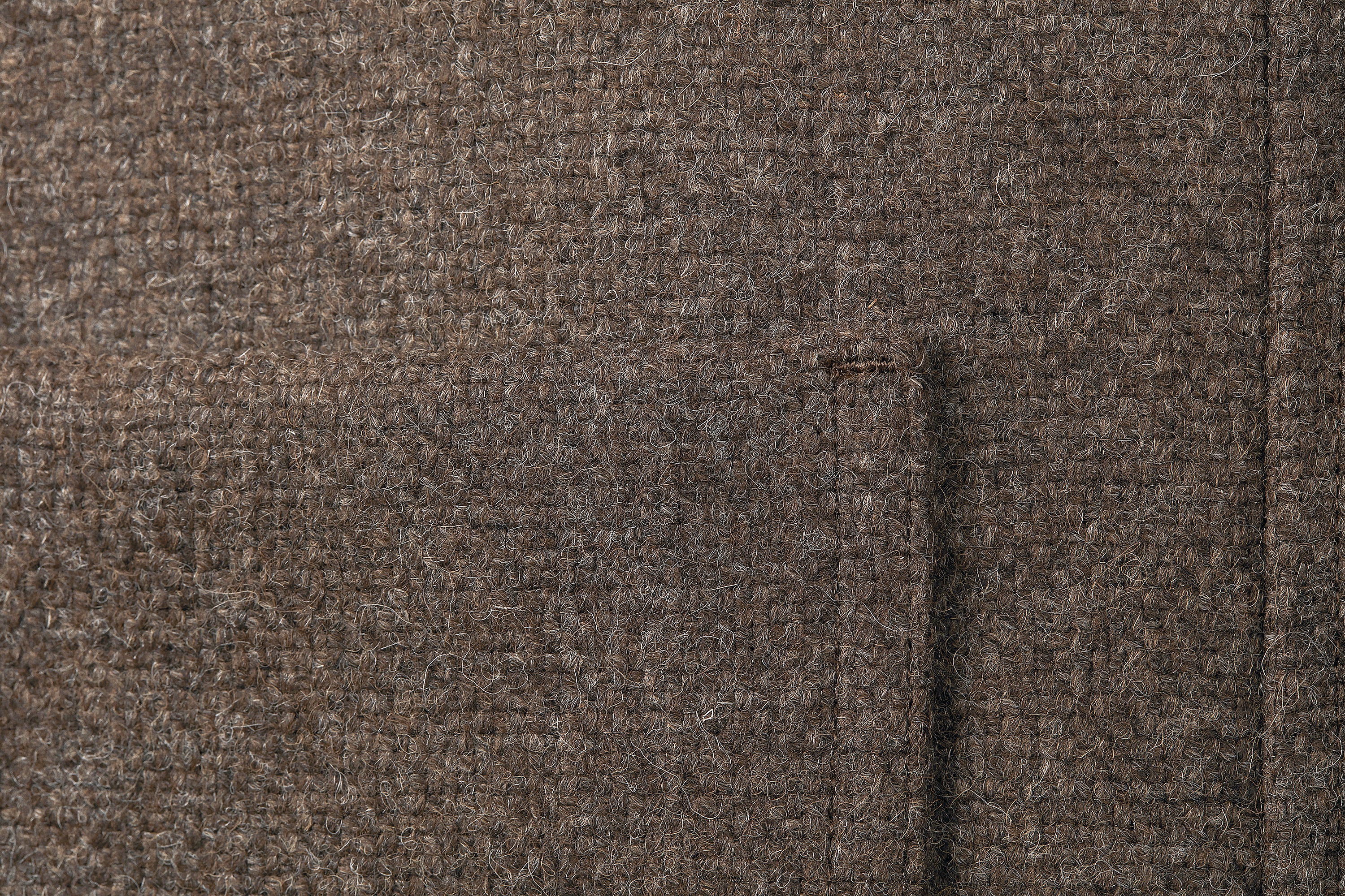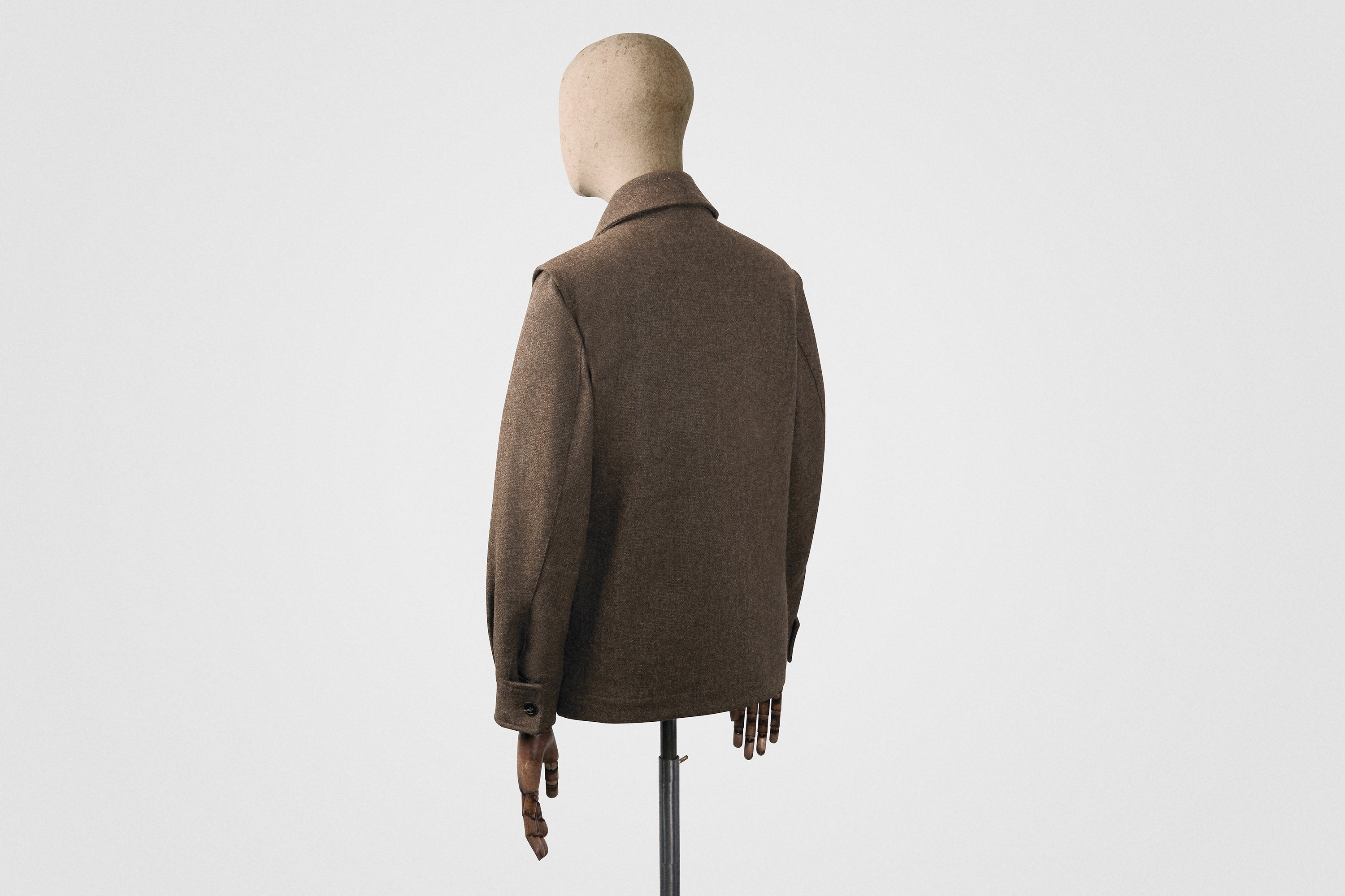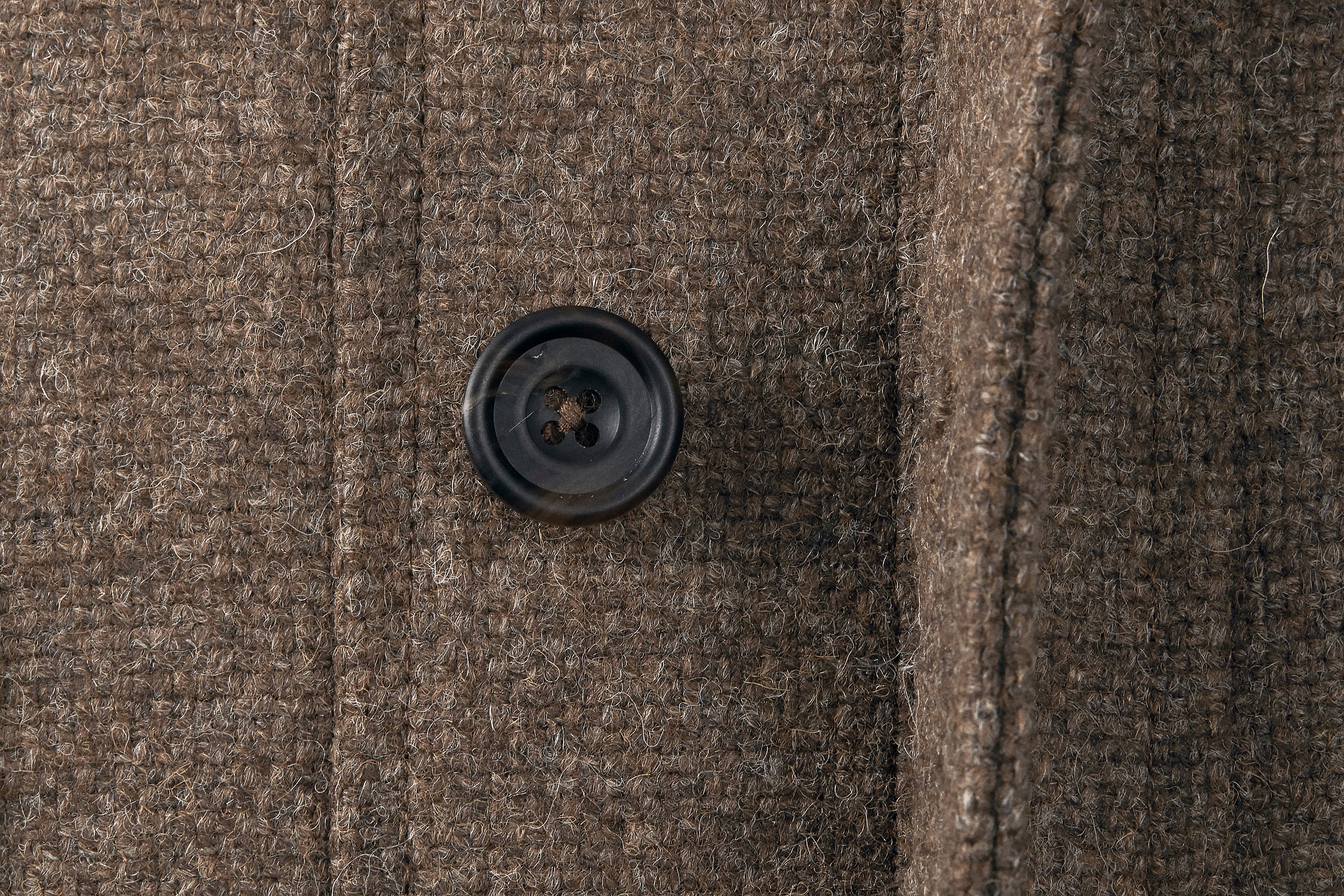 Veste de travail en hopsack de laine, fabriquée à Londres, avec un tweed des Hébrides de poids moyen (17 oz) à deux moutons - et avec des boutons en corne des Cotswolds.